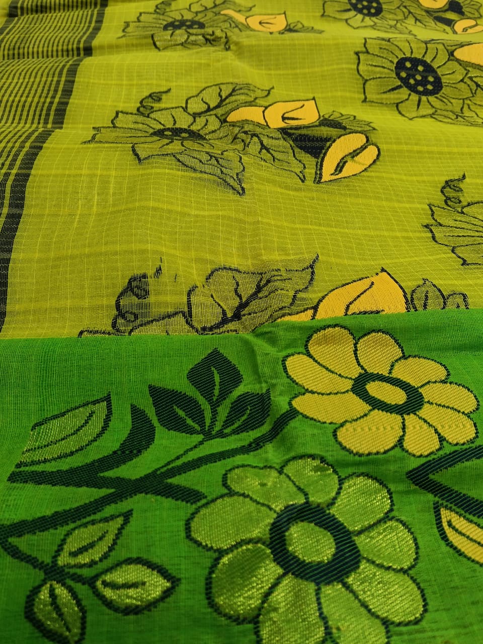 Cotton Tant Saree With Fine Premium Cotton Thread Work Lily Design. Tant Saree For Women Pure Cotton , lily Design : 5.5 Meter Saree Without Blouse Pes. , Wash Care : 1St Dry Clean Only Then Handwash Or Machine Wash , Don’t Use Bleach . Saree Length- 5.5 meter