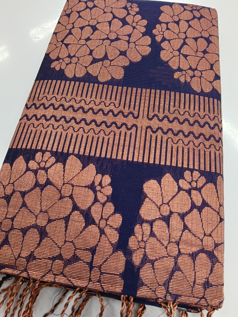 Copper Saree In Soft Cotton Fabric – The Saree Is Elevated with ZariWork Embroidery – It Comes with An Unstitched Blouse – Comes with Radha Rani Trends Promise Of Premium Quality.