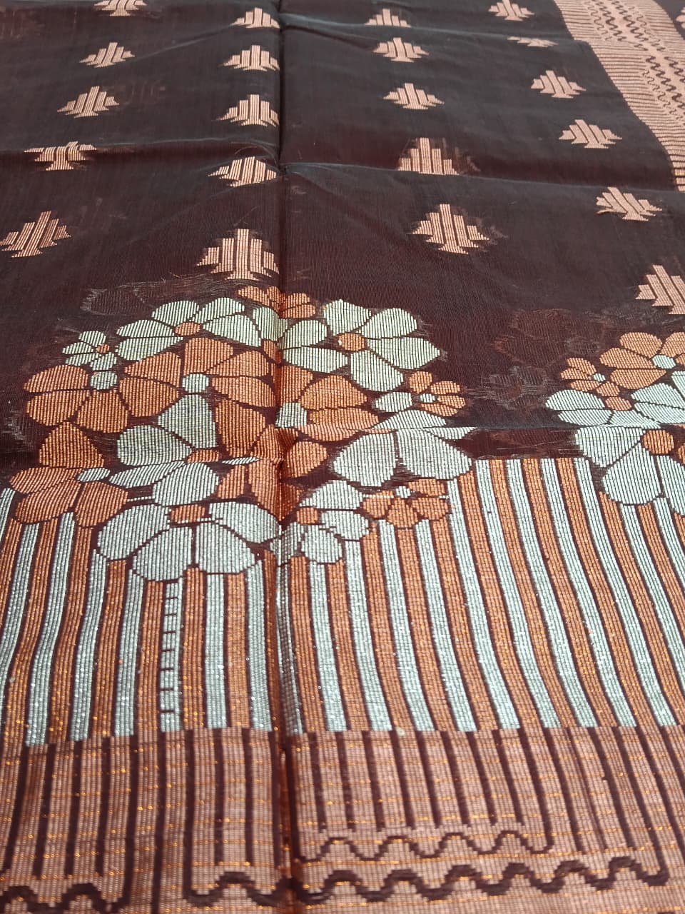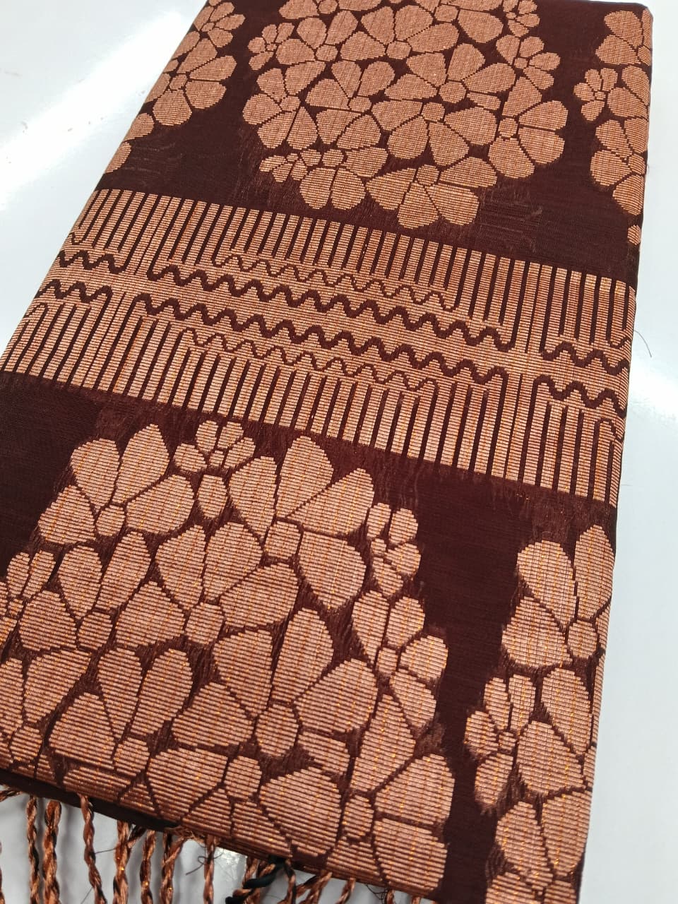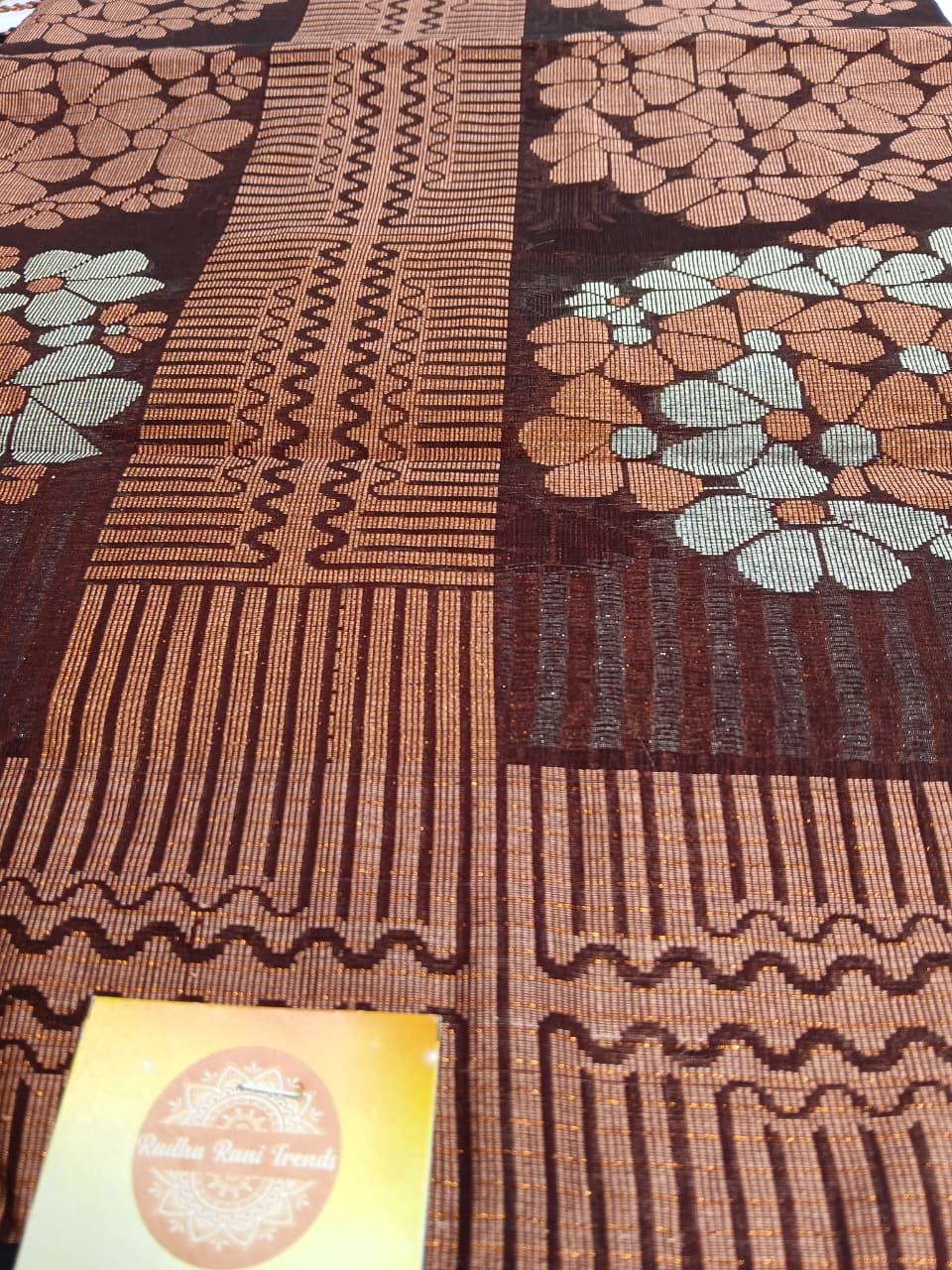 Copper Saree In Soft Cotton Fabric – The Saree Is Elevated with ZariWork Embroidery – It Comes with An Unstitched Blouse – Comes with Radha Rani Trends Promise Of Premium Quality.