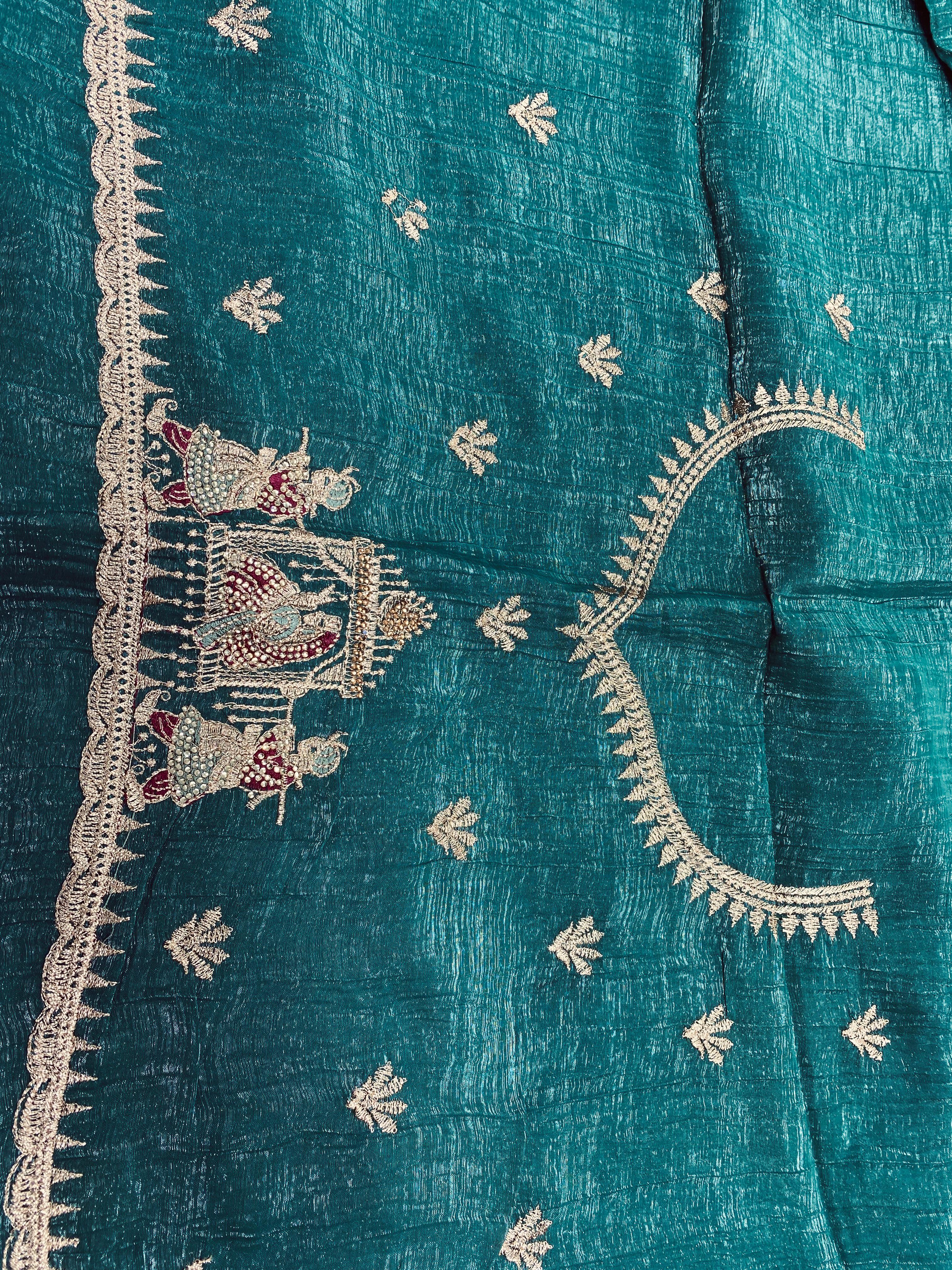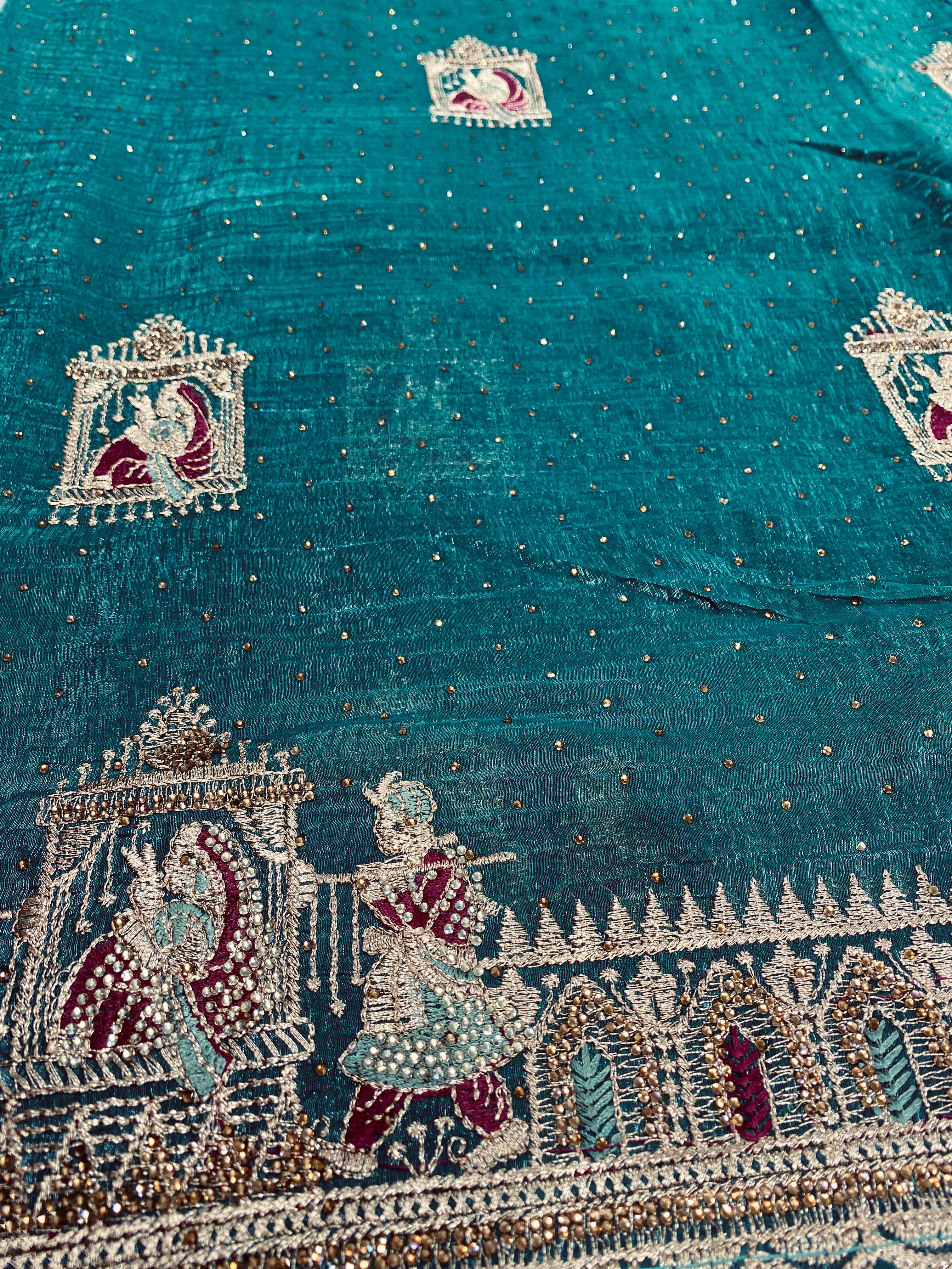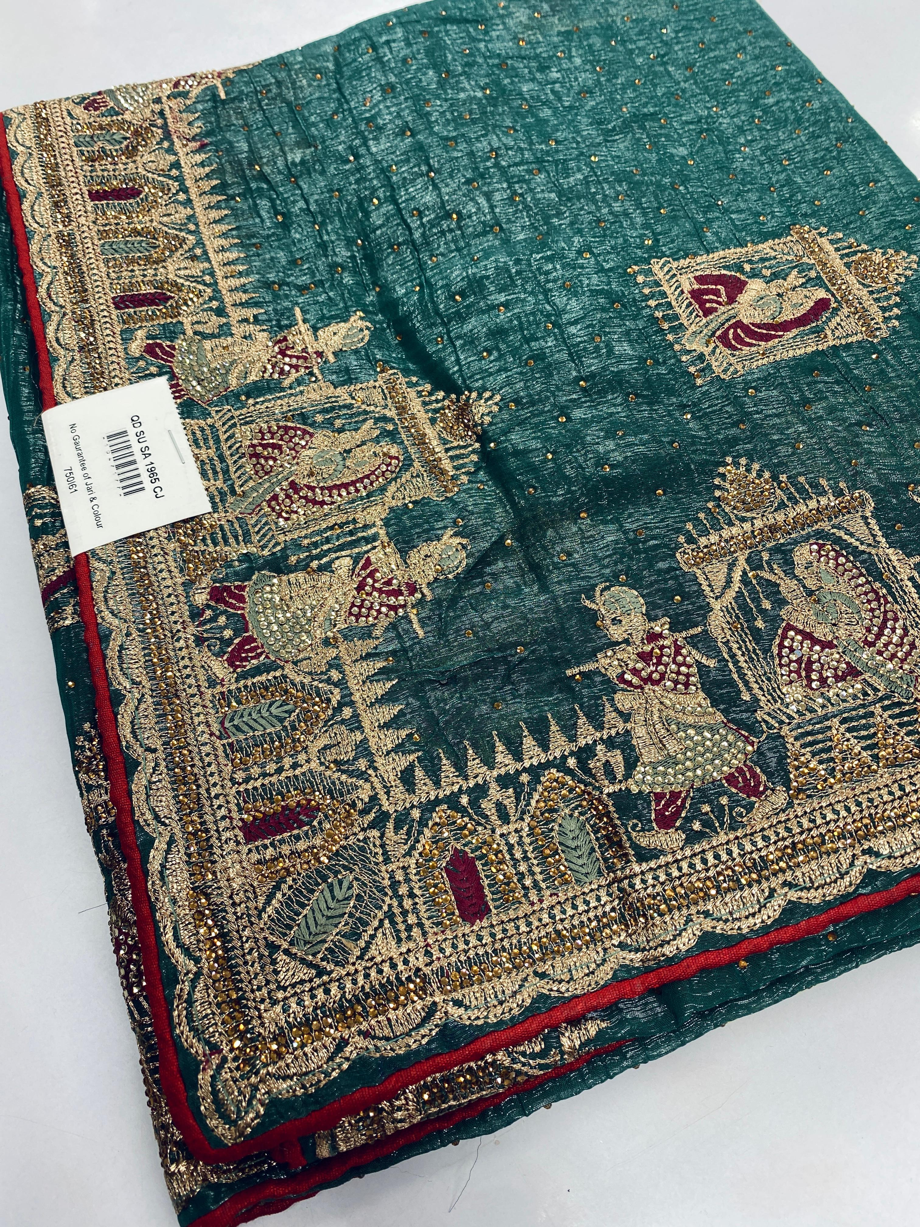 Be the first to review “Doli Design Organza Crap Saree with Unstitched Blouse Piece – Pine Green”