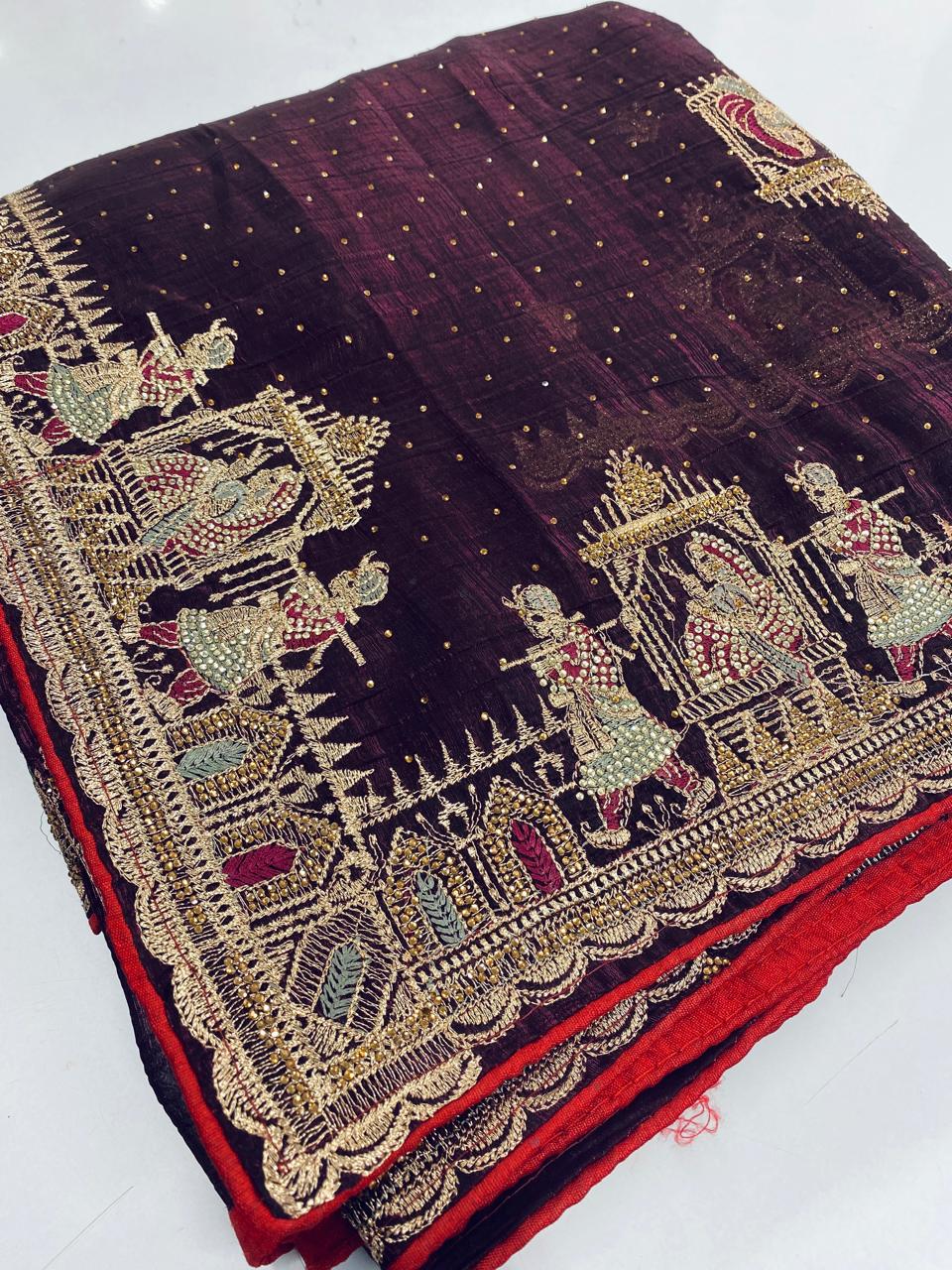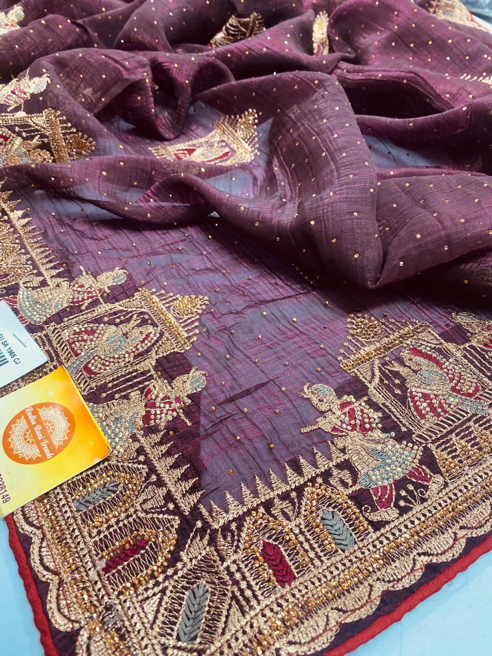 Experience the epitome of artisanal skill with special Doli design in all over border in sarees. Every stone is pasted with precision and passion, showcasing the exquisite craftsmanship passed down through generations in this Rose Pink Color.