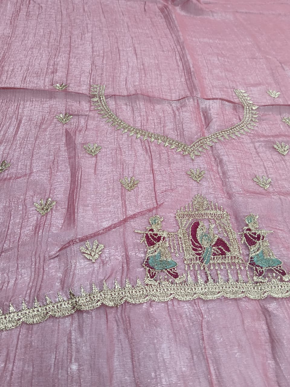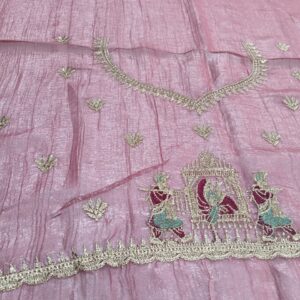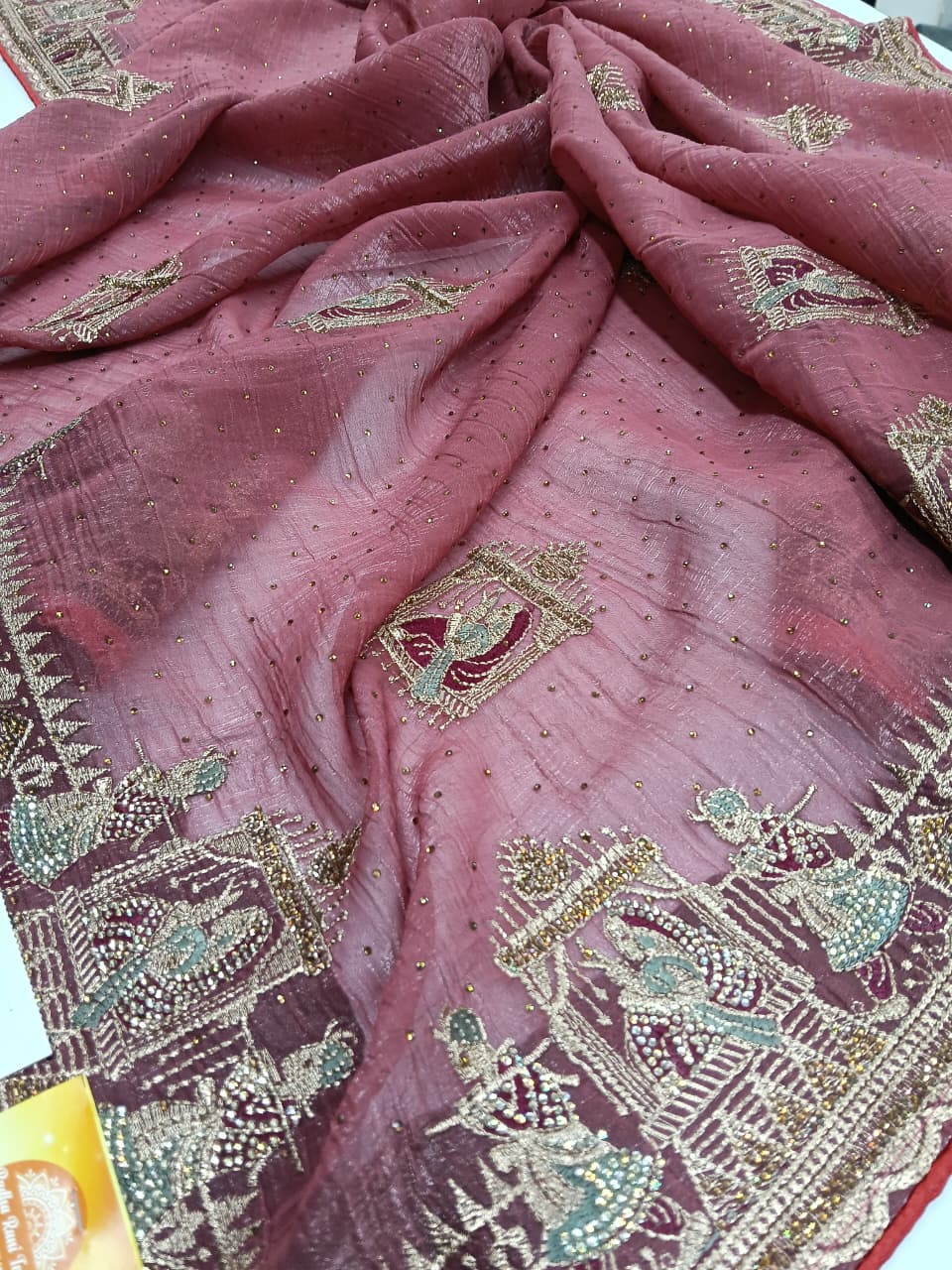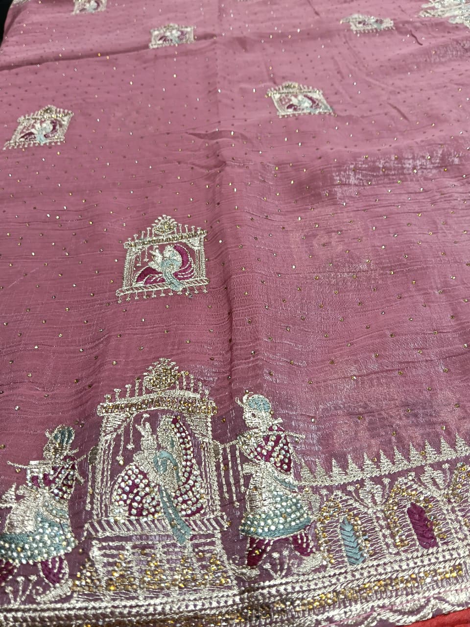 Experience the epitome of artisanal skill with special Doli design in all over border in sarees. Every stone is pasted with precision and passion, showcasing the exquisite craftsmanship passed down through generations in this Rose Pink Color.