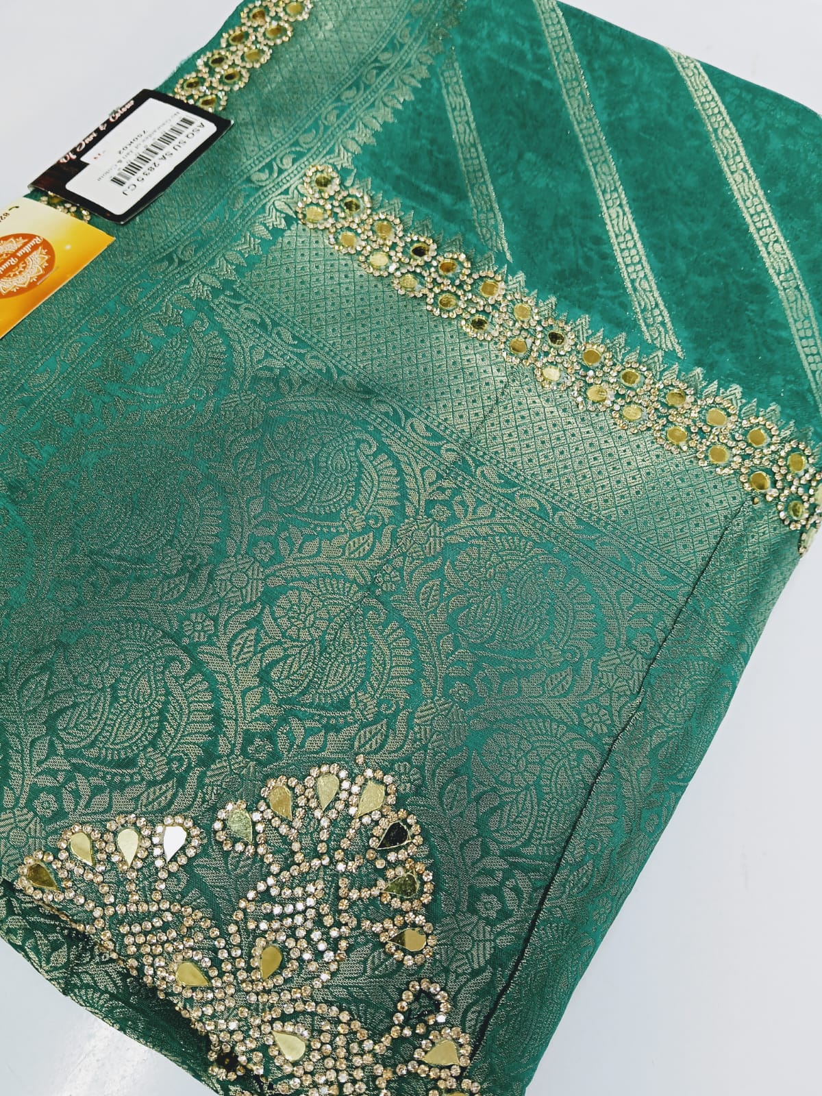 Be the first to review “Green Blend Silk Glass Work Saree With Unstitched Blouse Piece”