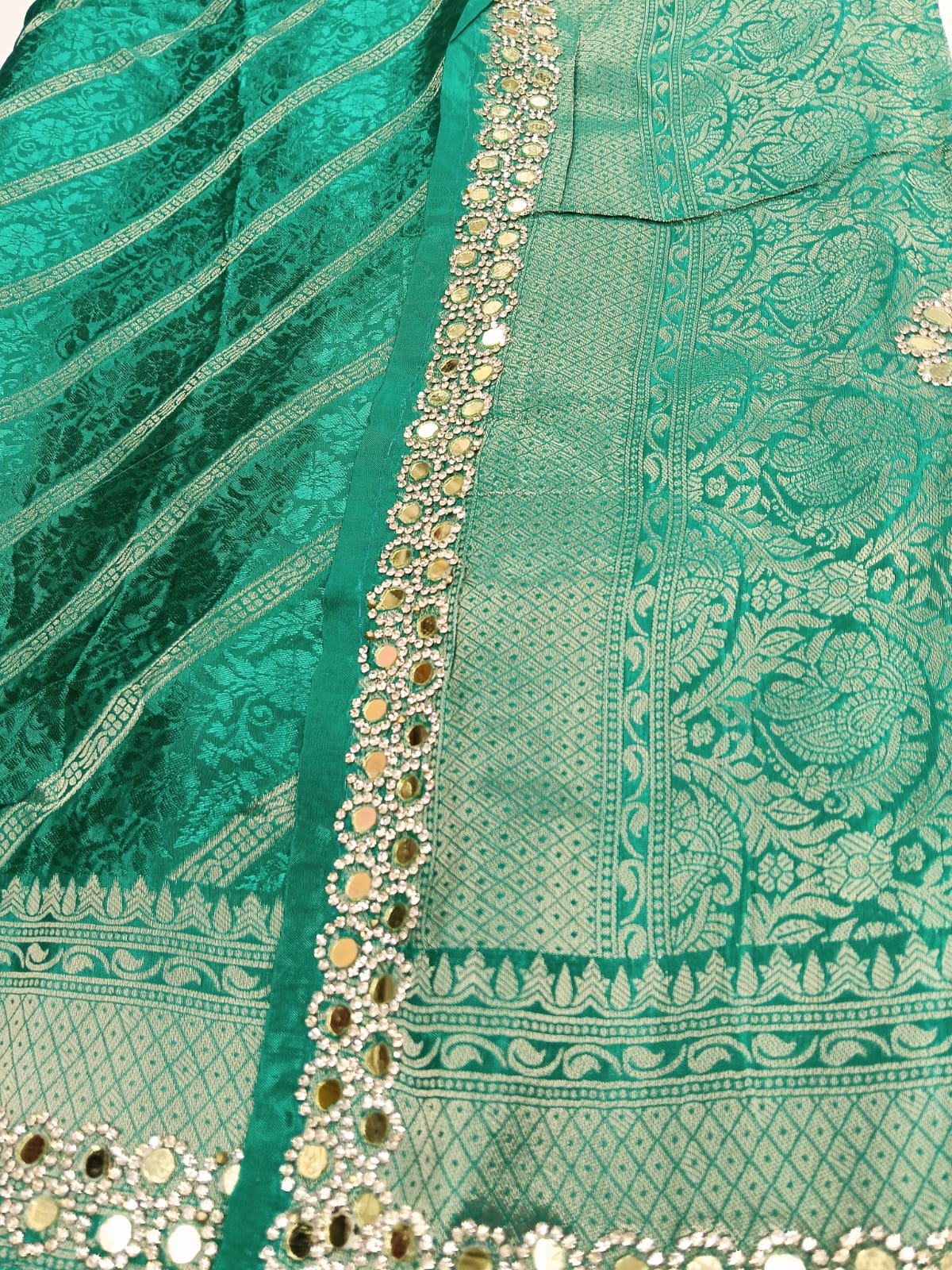 Green Blend Silk Glass Work Sa...