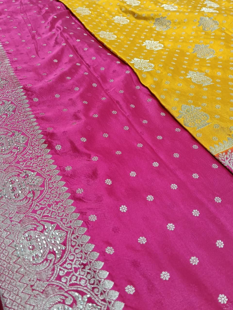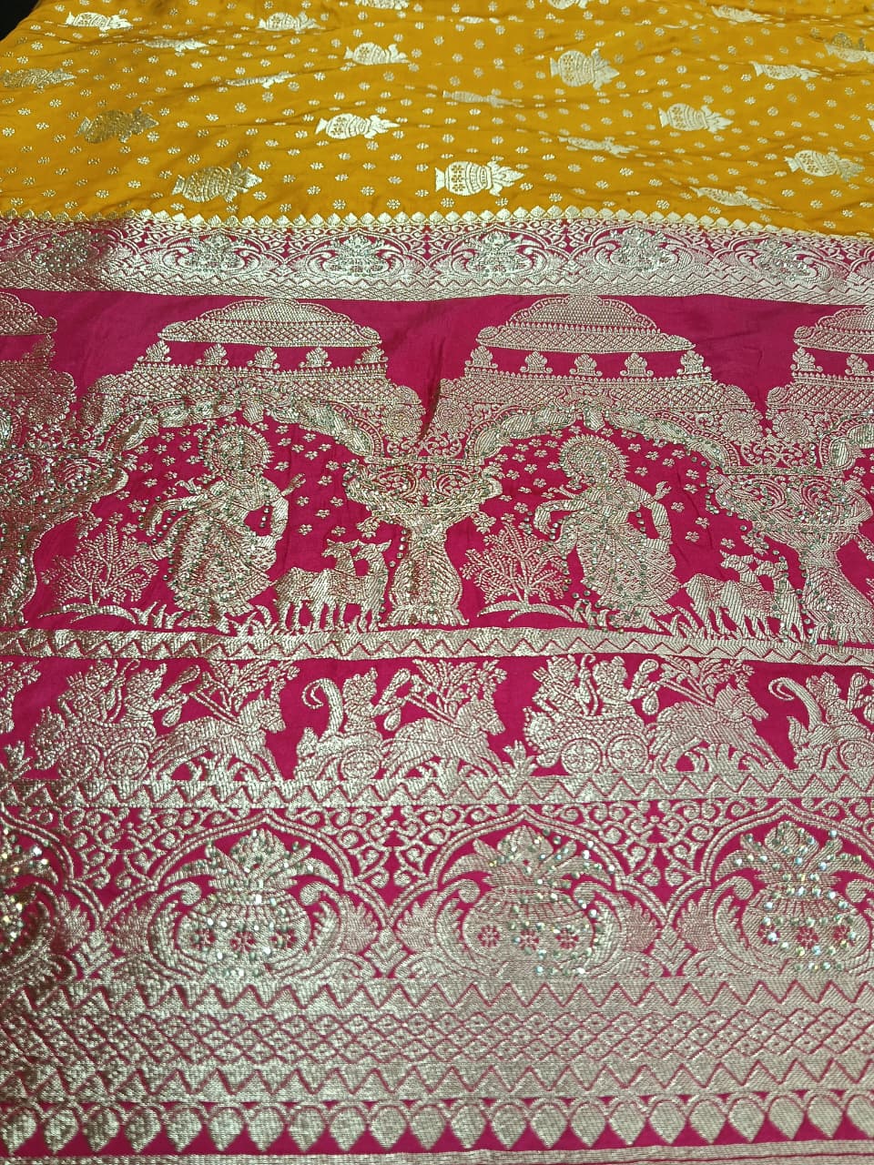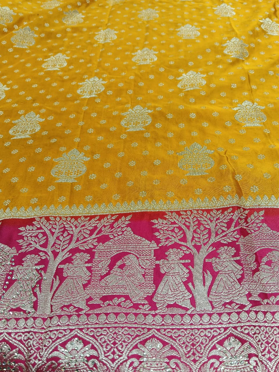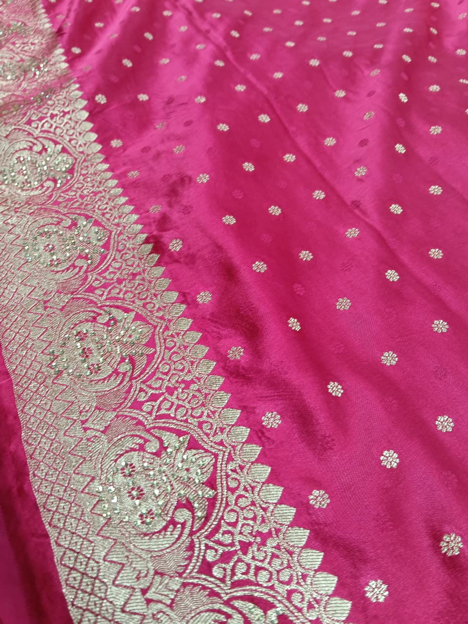 This Saree Is A Masterpiece Of Indian Craftsmanship, Combining Traditional Woven Techniques Of Modern Embellishments Like traditional kalash design all over saree with beautiful stone work, Is Perfect For Festive Occasions and Wedding season. The Unstitched Blouse Allows You To Customize The Fit And Style To Your Preference. Blouse Fabric May Vary. . Awarded As The Most Trusted Brand, We’re Delivering Styles You Love, Just As Promised.