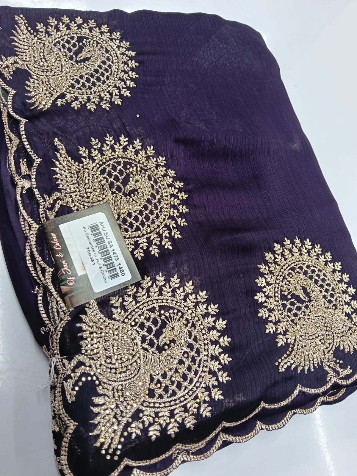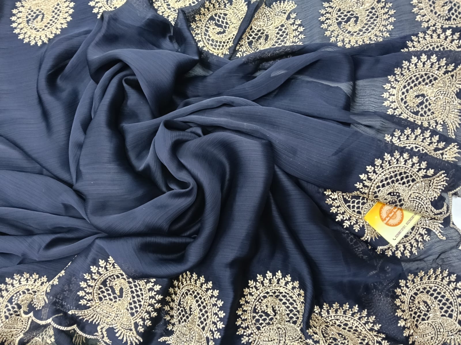 Be the first to review “Midnight Blue Peacock Embroidered Border Saree with Unstitched Blouse”