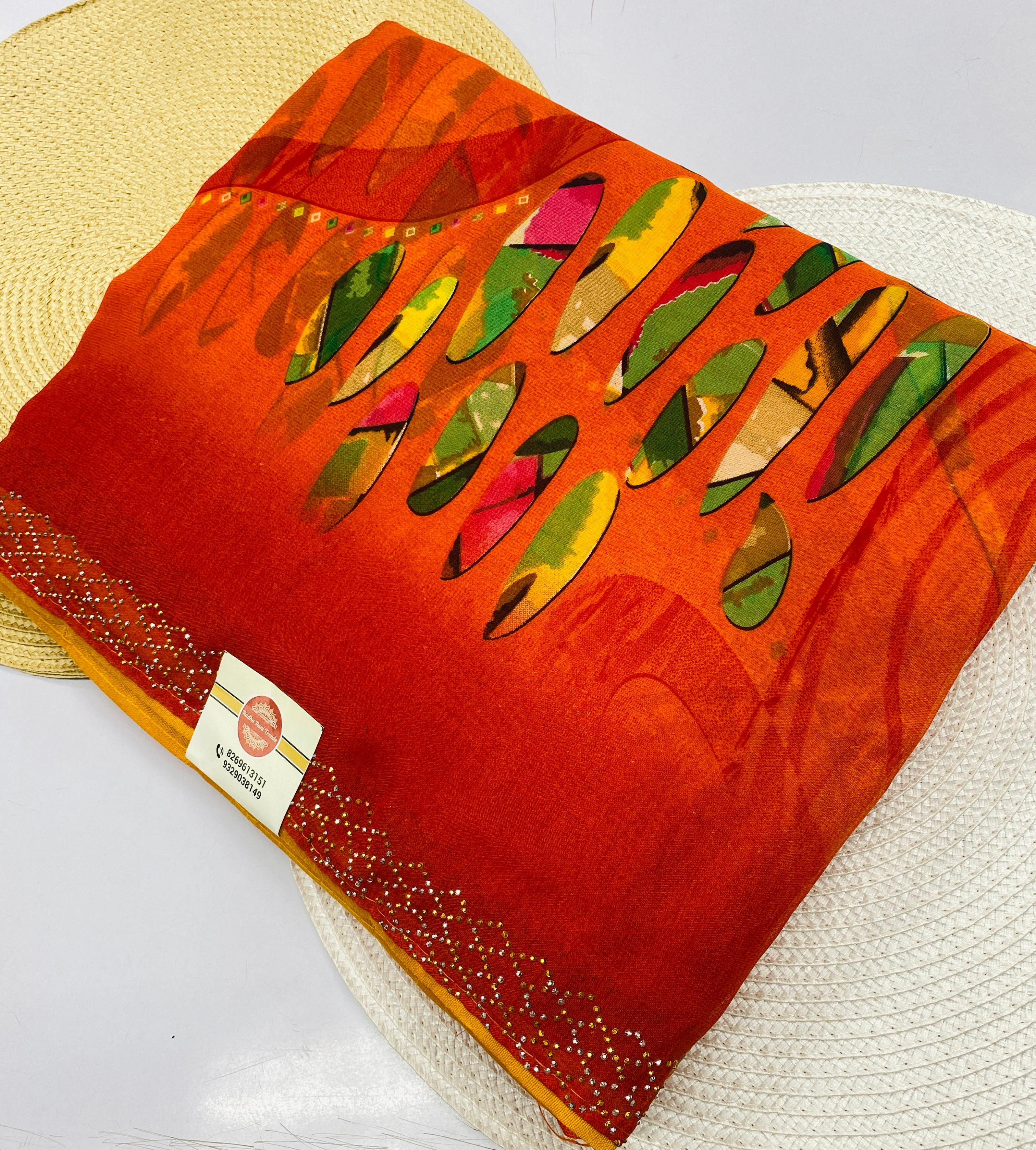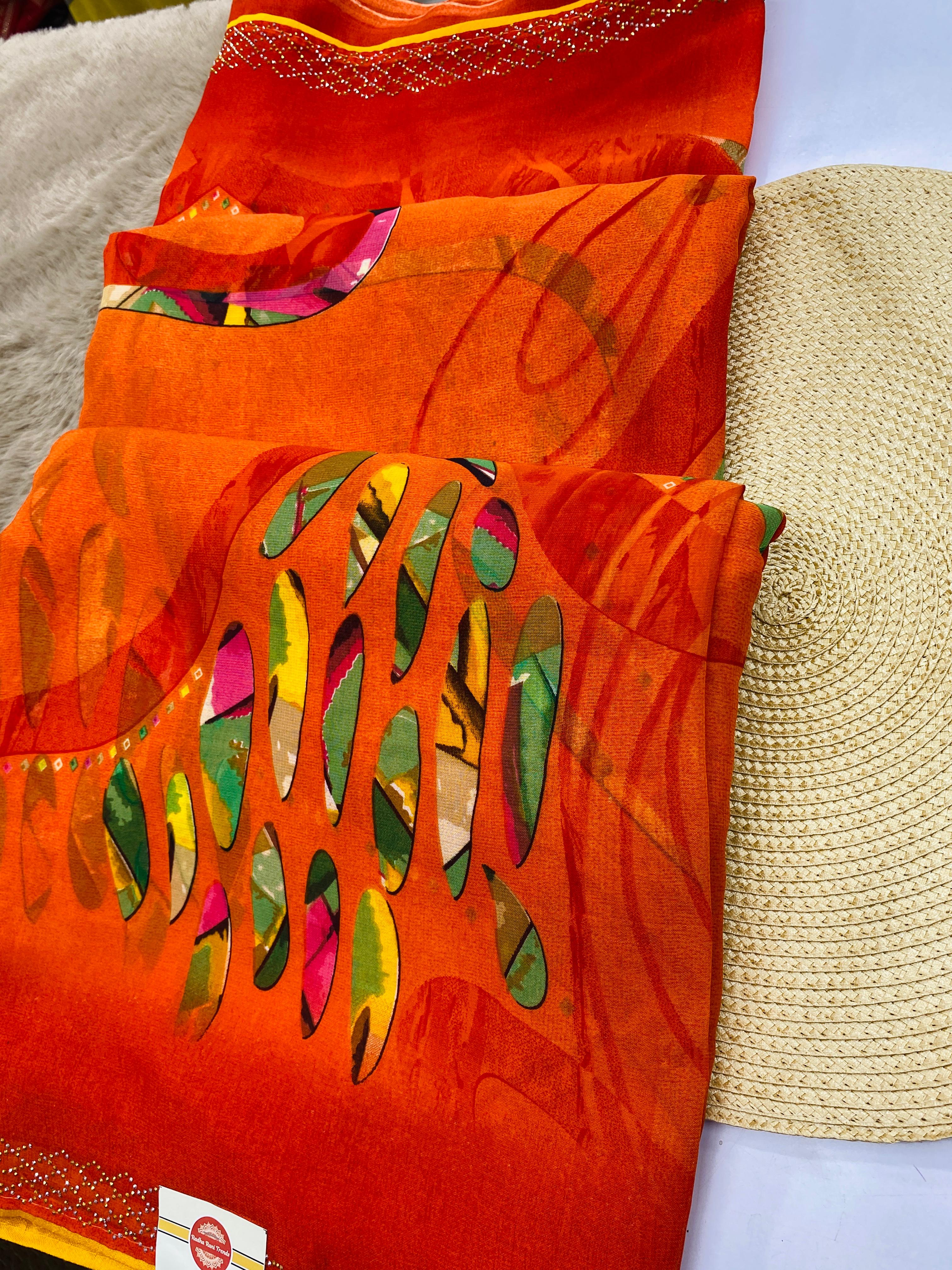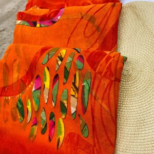 Be the first to review “Printed Chiffon Saree Orange Color”