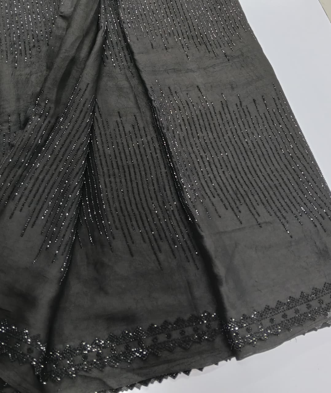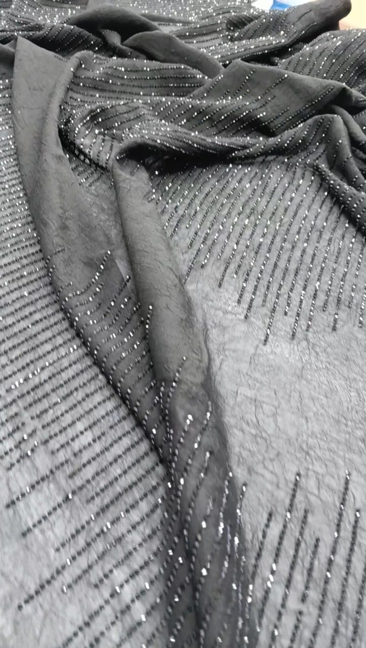 Be the first to review “Pure Black Stonework Party Wear Georgette Saree with Unstitched Blouse”