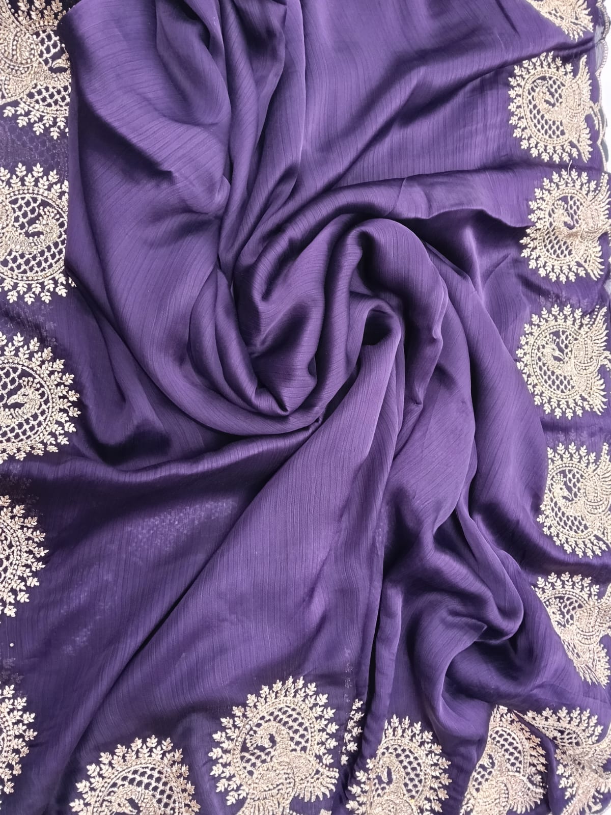 Be the first to review “Royal Blue Peacock Embroidered Border Saree with Unstitched Blouse”