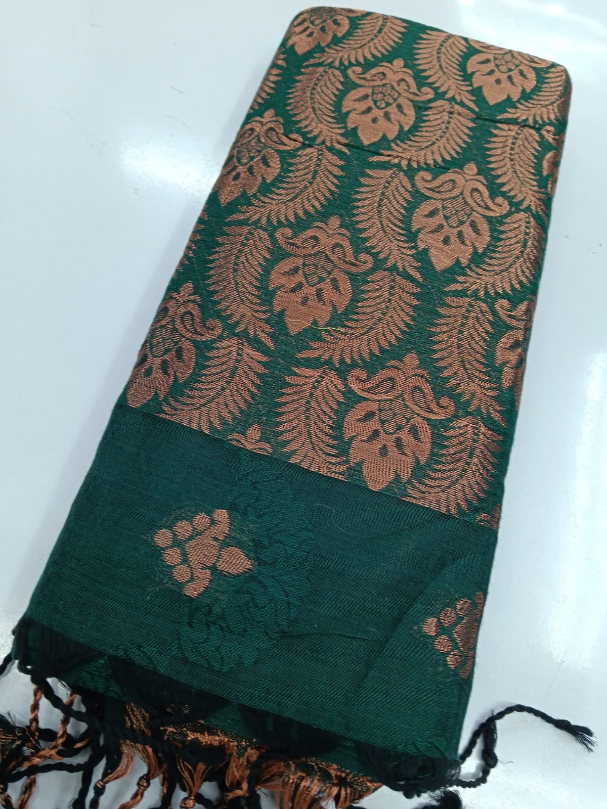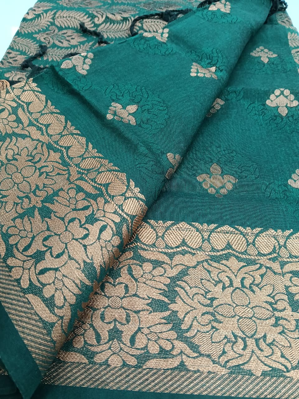 This elegant saree is crafted from soft cotton fabric saree, offering a perfect balance of comfort and sophistication. The saree is beautifully adorned with colourful thread floral embroidery that enhances its graceful appeal, while the zari work adds a rich, festive touch. Measuring 5.5 meters in length, it drapes effortlessly to create a timeless silhouette. The set comes with a matching 0.8-meter unstitched soft cotton blouse piece, allowing you to tailor it to your style and fit. Ideal for parties, festive celebrations, and exclusive occasions, this embroidered cotton silk saree is a stunning blend of traditional artistry and refined elegance.